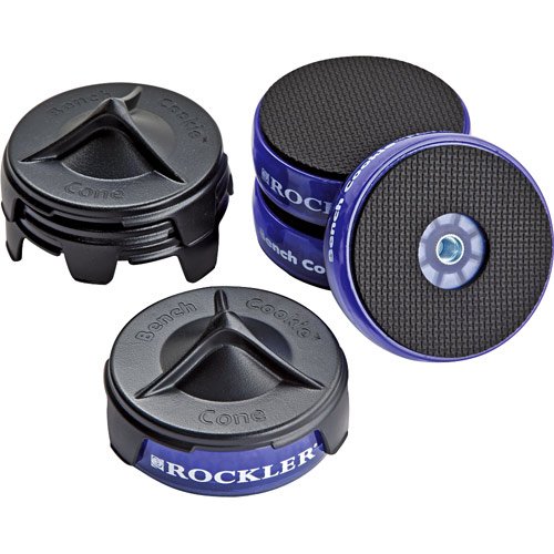 The finisher's specialuse the Bench Cookies to sand to a fine, smooth surface, then slip the cones over the cookies, and get out the varnish. The finishing cones allow you to finish the second side of your project while the first side dries safely perched atop the cones. And of course, Bench Cookie Plus allows you to add Bench Cookie Risers (sold separately) if you want more clearance beneath the project. Technical Details: Set includes: (4) Bench Cookie Plus Work Grippers (4) Bench Cookie Cones Bench Cookie Plus Work Grippers: Features a 5/16-18 threaded insert. Bench Cookie Plus measures 3" x 1". Threaded insert accepts standard and XL Risers (sold separately). Rout, sand, cut and carve without using clamps. Raise up workpieces for easy edge finishing. Support projects without leaving marks. Assemble projects on a stable, non-slip base. Set up quickly for any application. Includes one set of four. Bench Cookie Cones: Engineered to fit snugly over any Bench Cookie Work Grippers. Finish both sides of a project without slipping or sliding. Minimal surface contact. Won't ruin your finish or mar your wood. Nest for easy storage. Protects your Bench Cookie Work Gripper pads from paint and other finish products. What's in the Box? (4) Bench Cookie Plus Work Grippers (4) Bench Cookie Cones