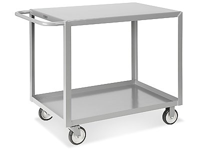 Welded Steel Carts - Move your heaviest items or use as a portable work bench. Giant 1200 lb. capacity. No bolts to work loose year after year. Bottom shelf is 1 1/2" deep. Shelves are 25" apart. 5" polyurethane casters: 2 locking swivel; 2 rigid. Uline s